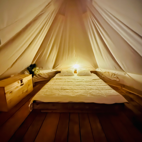 Jelena vám nabízí jedinečný zážitek spojení pohodlí a přírody. Ve stanu najdete útulnou ložnici, plně vybavenou kuchyň s plynovým sporákem a tekoucí vodou, solární sprchu i houpací síť pro váš dokonalý odpočinek.